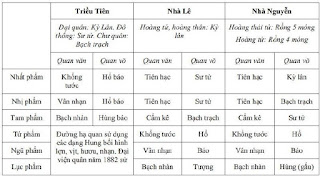 Bảng tổng hợp và so sánh quy chế bổ tử của bá quan Triều Tiên và bá quan Lê – Nguyễn nguồn từ cũng bài viết như hình trên